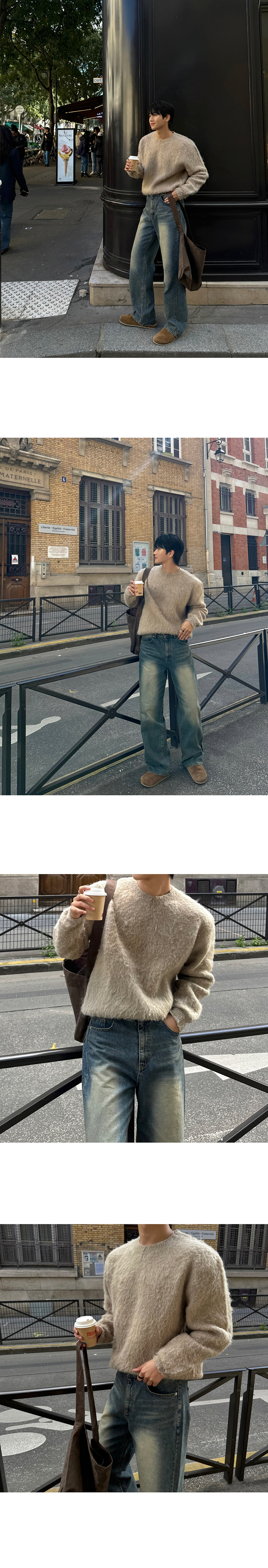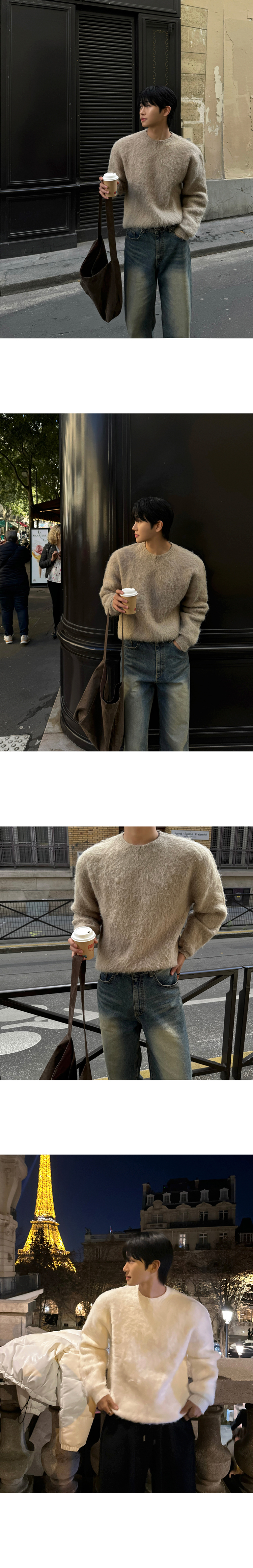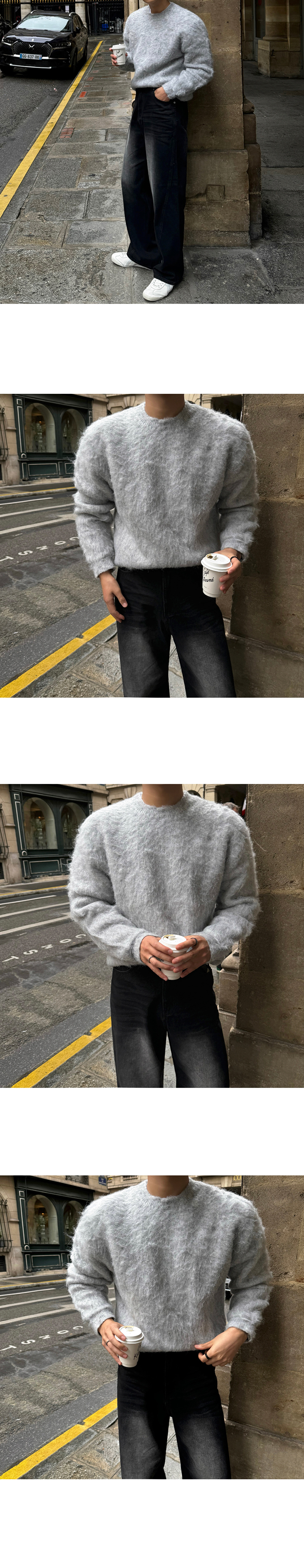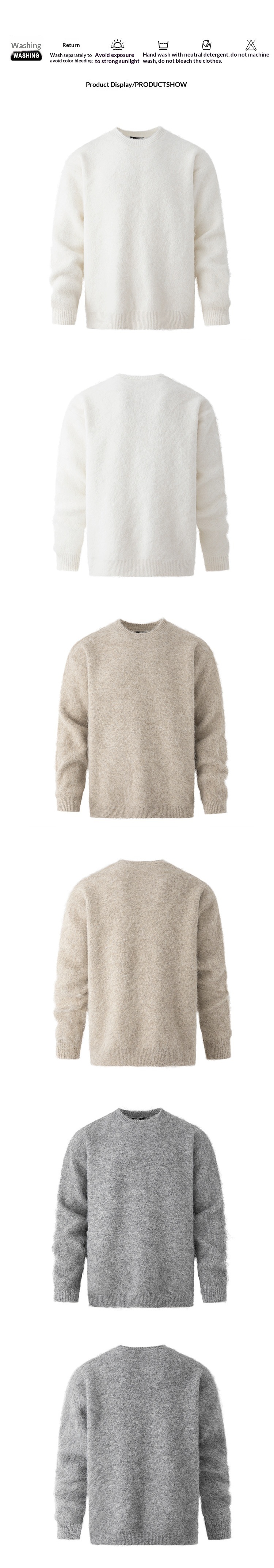 Mohair Pullover Warm Loose-Fit Crew-Neck Sweater For Cold Weather