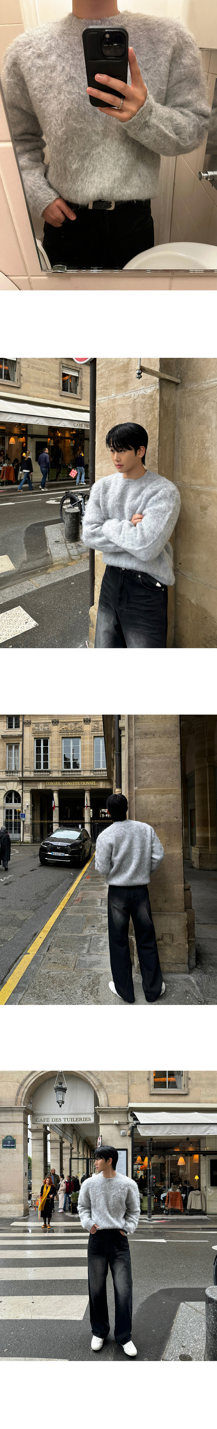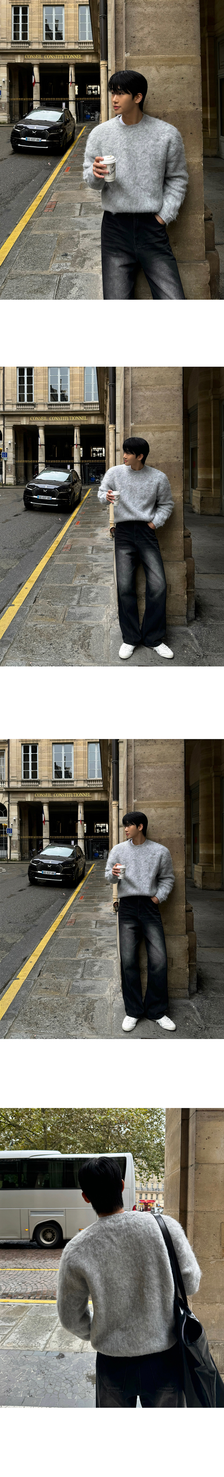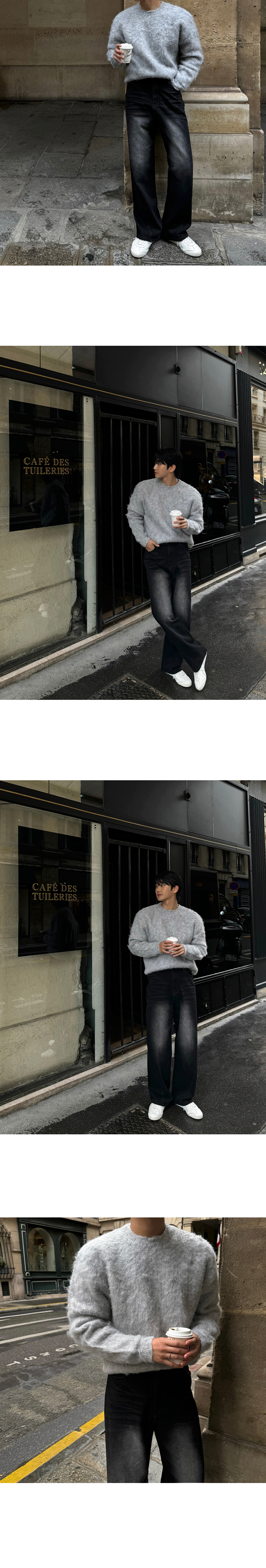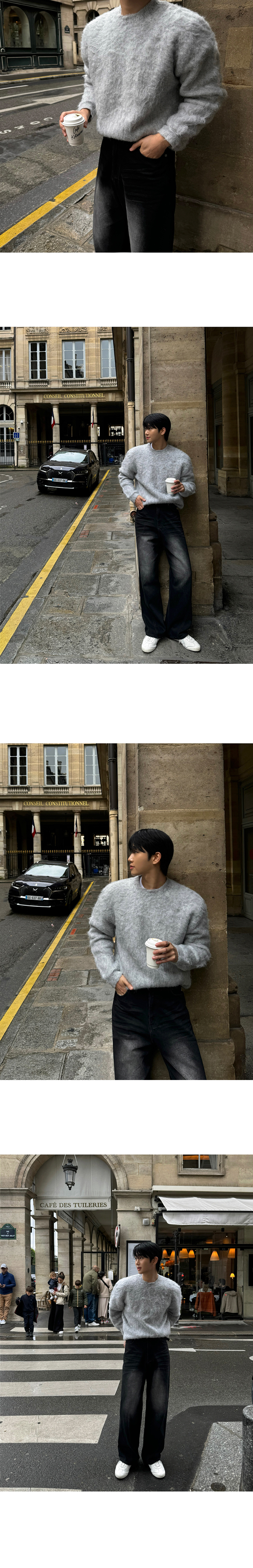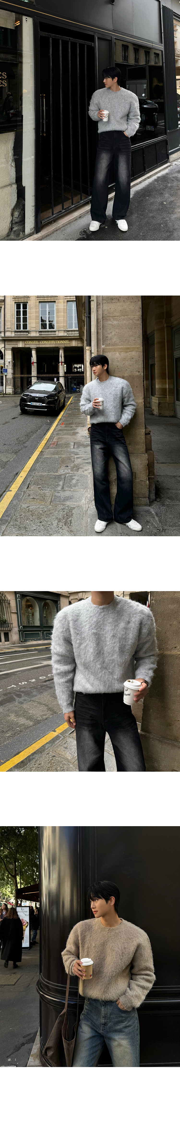 Mohair Pullover Warm Loose-Fit Crew-Neck Sweater For Cold Weather